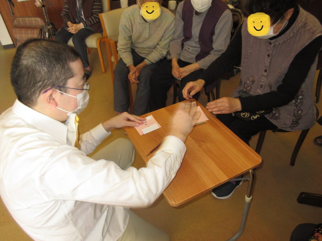 職員による手品ショーを開催しました。目の前の手品に、みなさん驚き興奮され、ときおり大きな拍手をいただきました。